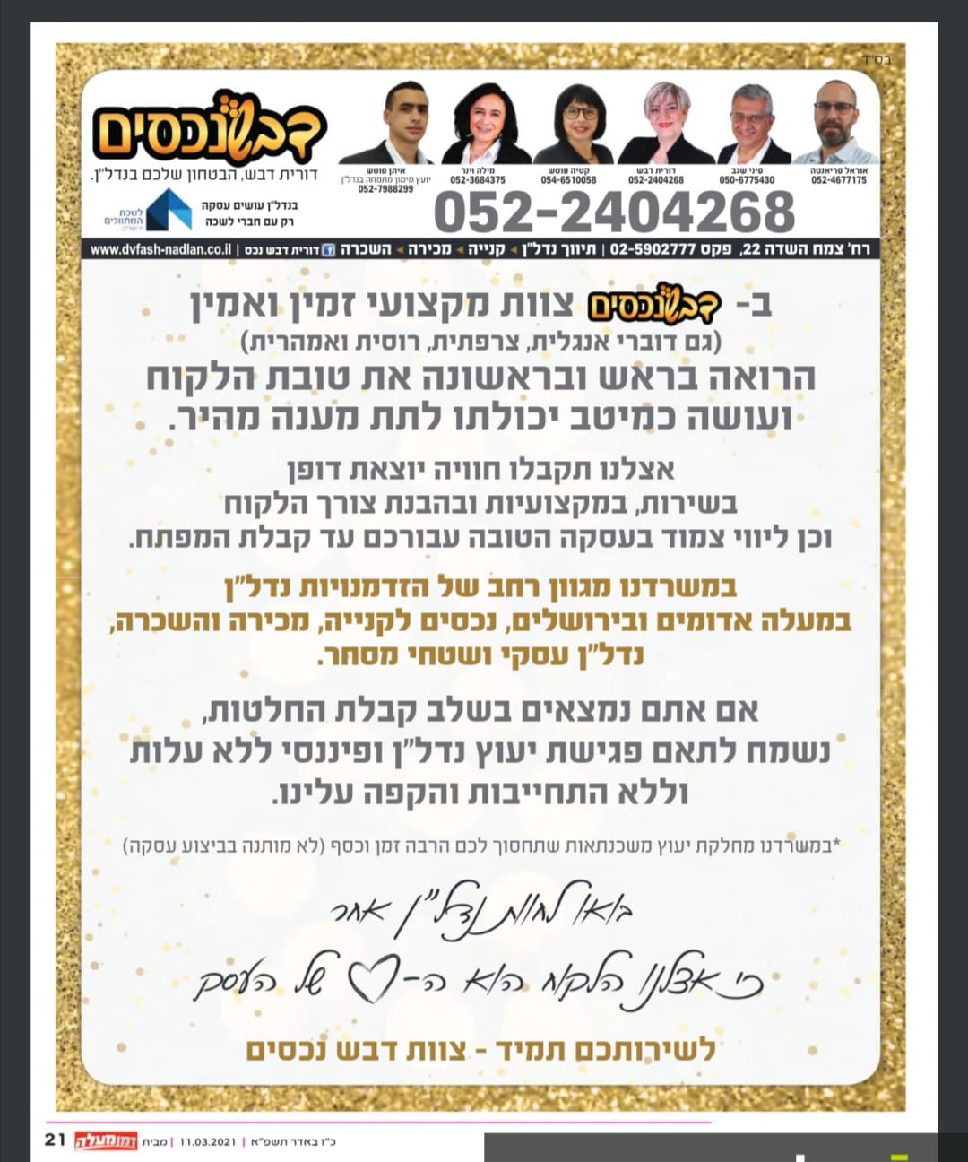 בדבש נכסים עובדים בשבילכם - זה ישתלם גם לכם.